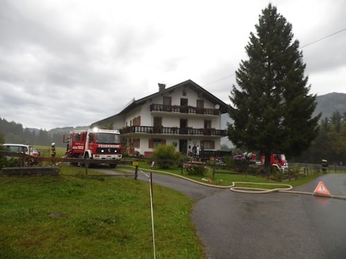 Am 04.10.2013 lautete die Alarmierung  „Kaminbrand mit eingeschloßener Person“ Fam. Zobl Oskar in Bogen. Die FFW Tannheim rückte mit MTF, DLK und TLF zum Einsatzort und suchte mittels Atemschutz das verrauchte Gebäude nach Personen. Es waren alle Gäste ohne Probleme bereits evakuiert, die anschließende Inspektion mit der Wärmebildkamera durch die FW Zöblen fand keine Glutstellen oder Brandherde.